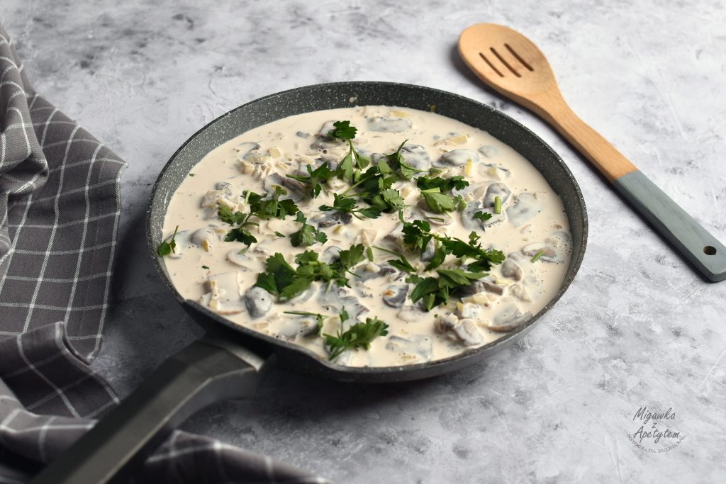 Placki ziemniaczane podane z sosem kurkowym